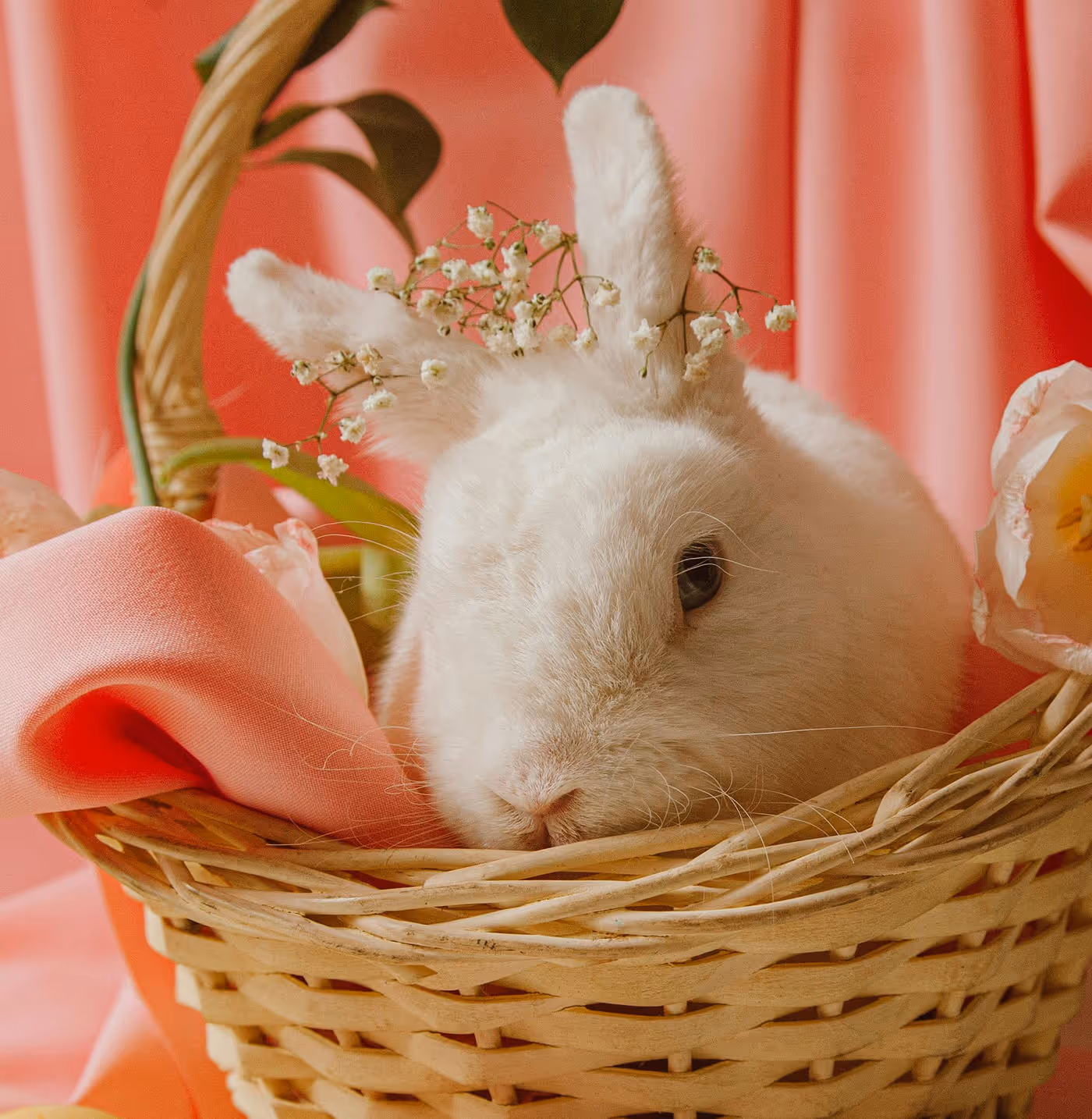 Not a person in a costume – real, live baby bunnies that are gentle, safe, and absolutely precious with little ones.