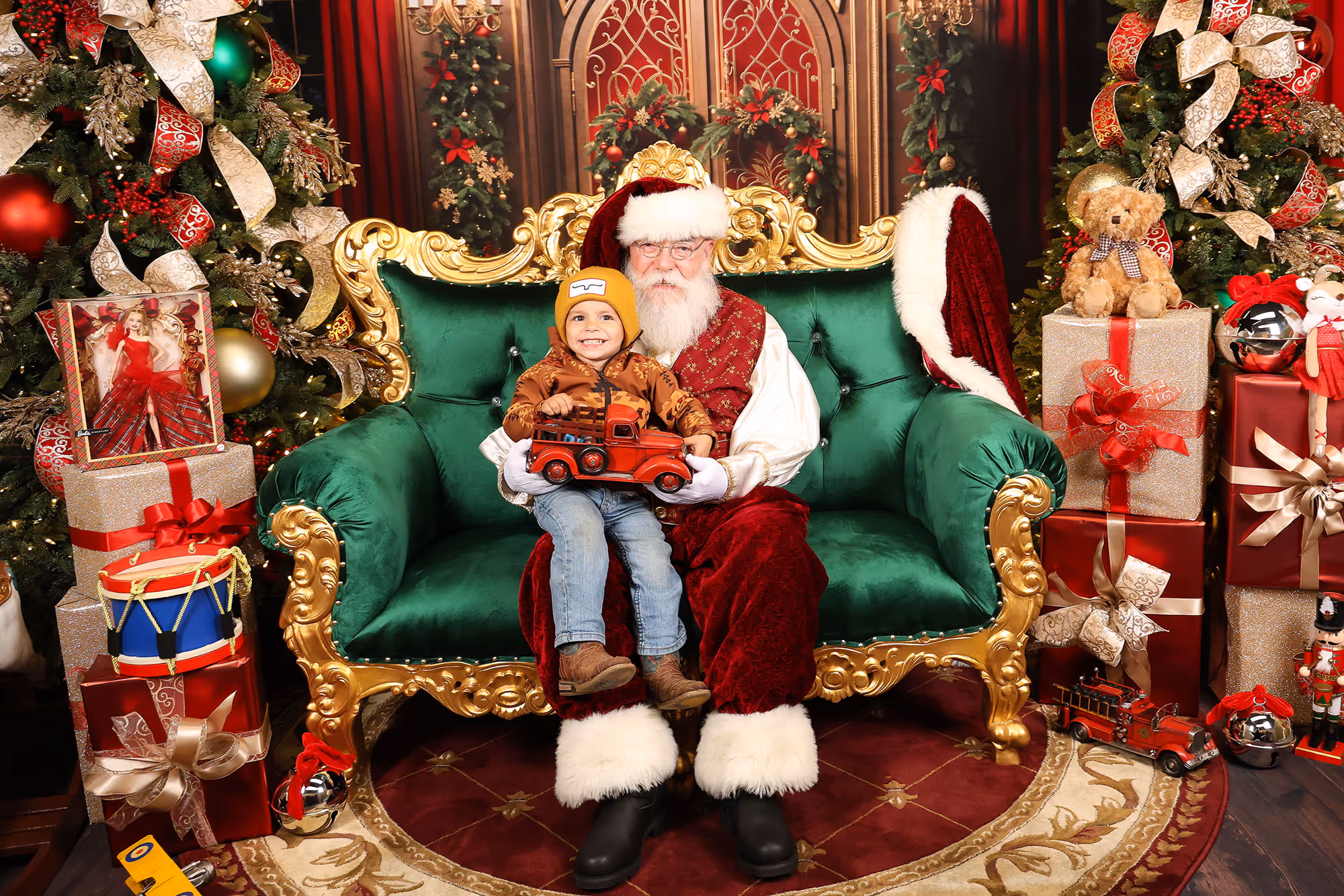 Forget the 30-second rush job at the mall. Your family gets a full 5-minute private session in our beautifully decorated photo studio where Santa takes time to connect with your children while our professional photographers capture genuine smiles and magical moments.